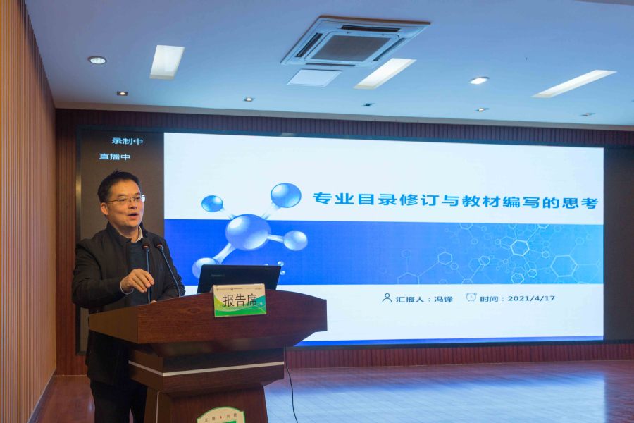随后,广东药品食品职业学院制药工程学院院长丁立、江苏医药职业学院教授秦红兵、中国医药科技出版社有限公司教材编辑中心主任何红梅、中国医药科技处出版社有限公司数字出版中心主任罗万杰分别就教材建设进行了经验交流与心得分享。
