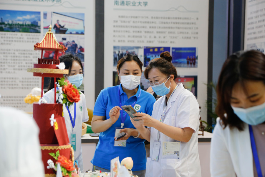 经过前期省内高校技能展示项目比拼,学校药妆、中药茶饮、面塑、果酱画等技能脱颖而出,于江苏馆核心位置展示,在启动仪式当日吸引了众多高校专家、各教育厅领导、师生等驻足欣赏、合影、留念。来自山东省教育厅的两位领导在药妆展示台前咨询,大力称赞好博·(中国)手机网页版创新创业工作;各省属高职校专业教师纷纷在周干老师果酱画展示台前驻足,领略传统技艺、感叹卓越技能、称赞校园美育。同时,学校还通过图片、文字、讲解、操作等,集中展示了学校在加快建设职业教育创新发展高地,立足新发展阶段、贯彻新发展理念、服务国家大健康发展格局的积极作为和创新实例。