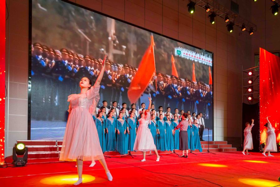 赛歌会在大学生艺术团《光荣啊中国共青团》《爱我中华》中拉开序幕,展示了青年学子爱党爱国的精神风貌。华丽的舞台灯光、欢快的旋律节奏,把观众带入庆祝中国共产党成立100周年喜庆的氛围中。各分工会带来的《没有共产党就没有新中国》《歌唱祖国》《我和我的祖国》《向往》《军民大生产》《唱支山歌给党听》等大合唱歌曲气势恢宏,赢得阵阵热烈掌声,不断将赛歌会推向高潮,将观众带入中国共产党领导中国人民谋求民族独立与解放,实现中华民族伟大复兴的百年征程之中。
