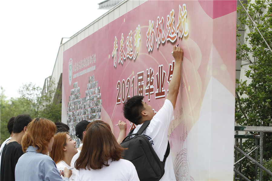 繁花似锦筑梦未来,毕业骊歌致敬青春。在《少年》的歌声中,属于2021届全体毕业生的盛会落下帷幕。会场外,同学们依依不舍,与曾经的同学、未来的校友一一合影,用笑容和泪水向母校挥别。