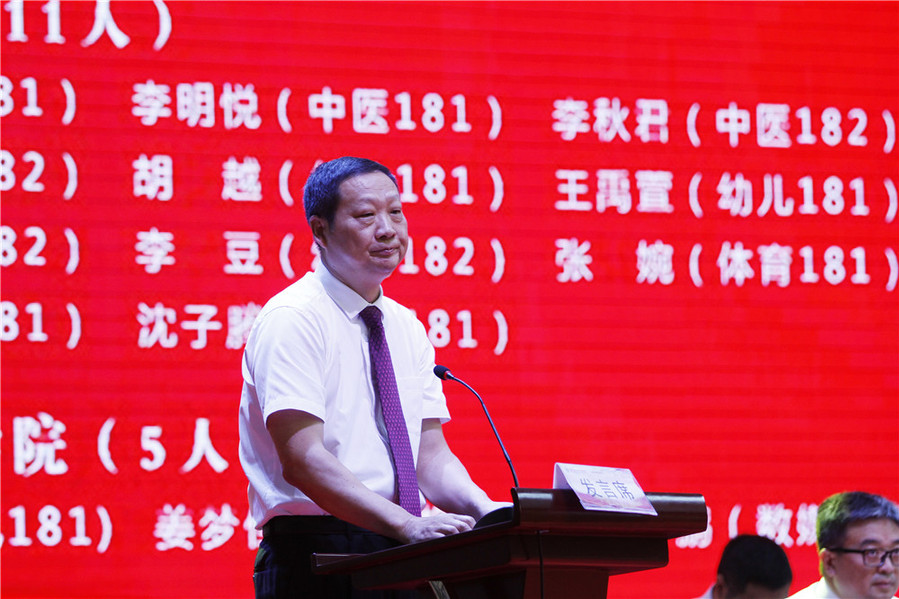 “经历大一的纯真年代,告别大二的紧张与忙碌,我们来到了今日大三的依依别离。” 健康学院体育181班韩宗谕代表全体毕业生发言,她表示三年大学时光已化作无形胶片,将永远珍藏在脑海中,感谢母校的关心、教育、辛劳、鼓励,激励着每一位毕业生在社会的风浪中勇敢前行。