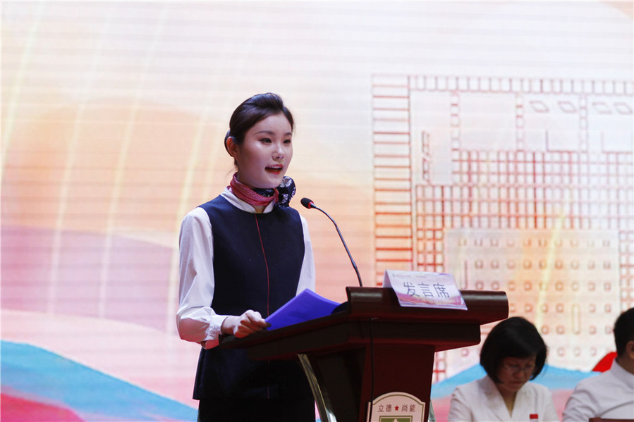 在校生代表高铁201班李圆圆送别毕业生。她将这次毕业典礼喻为奔赴全新战场的号角,而学长学姐的成就也将鼓舞着学弟学妹们博学笃志,奋发图强。