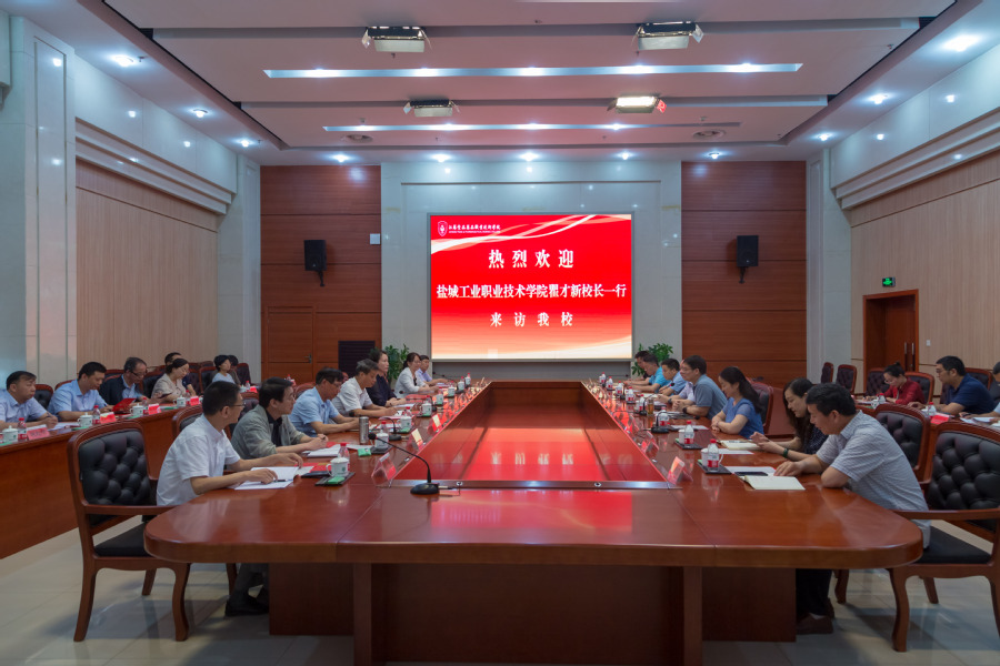 6月30日上午,盐城工业职业技术学院校长瞿才新、副校长孙卫芳、副校长刘必千及相关部门负责人一行16人来访好博·(中国)手机网页版,校长冯锋,副校长翟玮玮、安进热情接待了来宾。办公室、人事处、质管办、教务处、学工处、现教中心等负责人参加了本次交流会。