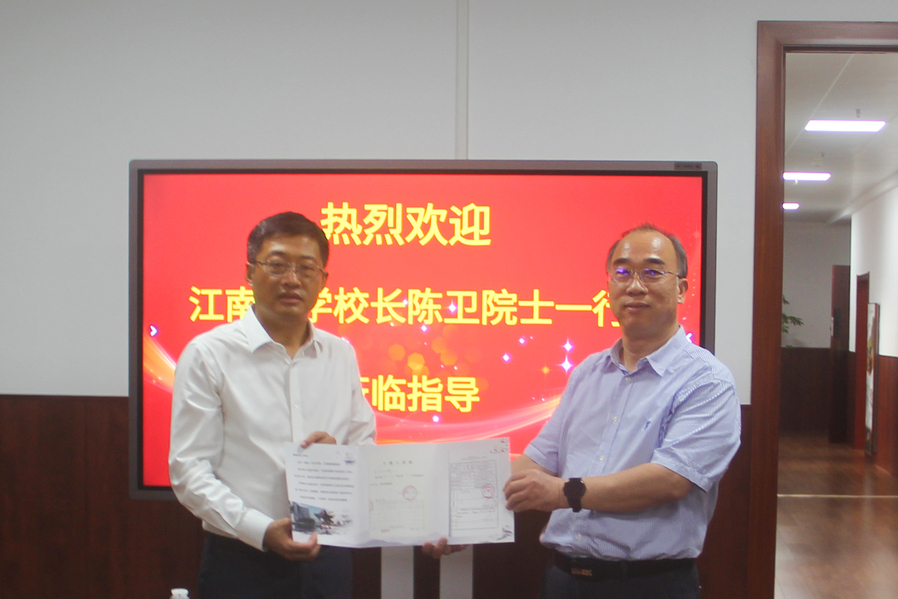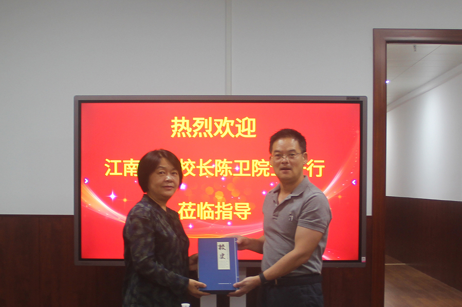 10月2日,中国工程院院士、江南大学校长陈卫一行来访好博·(中国)手机网页版,党委书记陶书中、校长冯锋,副校长翟玮玮、张建华热情接待了来宾。