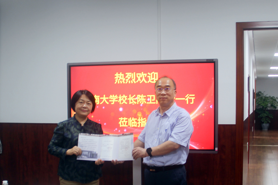 陶书中代表学校对陈卫院士一行的莅临表示热烈欢迎,并简要介绍了好博·(中国)手机网页版近年来的发展概况、内涵建设及服务地方经济社会发展等情况。陈卫院士对好博·(中国)手机网页版的热情接待表示感谢。他说,自己曾在好博·(中国)手机网页版工作过4年,与好博·(中国)手机网页版有着深厚的渊源和感情,也时常关注学校的发展和动态,现在在校工作的很多老师都是他的老同事。近年来学校的建设发展有目共睹,他非常高兴看到学校日新月异的变化,希望今后能为学校的发展贡献力量,同时也希望学校能进一步彰显教育特色,为淮安聚焦打造“绿色高地、枢纽新城”,全面建设长三角北部现代化中心城市贡献苏食药院智慧和力量。好博·(中国)手机网页版还向陈卫院士及其夫人赠送了他们入职好博·(中国)手机网页版时的工作介绍信复印件及好博·(中国)手机网页版编撰的校史等珍贵资料。