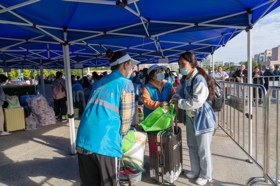 为使新生有秩序、有效率的完成开学报道工作,学校不仅提前安排了接送车辆,还调用了大量保安人员、师生志愿者团队,协助新生搬运行李。校内校外都设置了新生接待点,身穿红绿马甲的志愿者们更是早在6点前就已整装到岗,随时准备迎接新生。志愿者药剂204戴宁说:“高铁站、飞机场、汽车站、学校大门口、宿舍楼......只要有新同学的地方,就有我们志愿者们匆忙的身影。”康复201张凌云表示:“虽然要克服早起,但是去年我也是因为学长学姐的帮助才能更快安顿下来,这样的接力理应成为传统,于是我和我的同学们都来了!”新生的到来让他们虽忙碌但快乐着,接送车辆上“我为同学办实事”的横幅充分表达着青年一代的努力和担当。“刚进校就有学长学姐在各个地方为我们指引、搬运行李、介绍校园,感受到了学校的人文关怀和热情,很暖心!”财务211班的新生姜睿婧这样表示道。