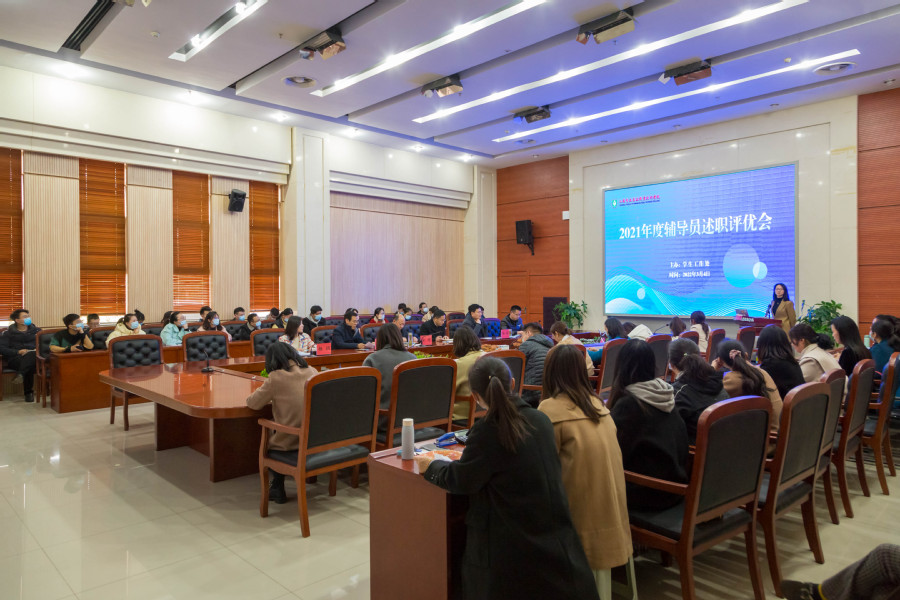 年度综合考核排名前14位的辅导员参加了现场述职评优会。述职过程中,辅导员们通过精美的PPT,回顾和盘点了2021年特色与创新工作,展望和构想了2022年学生工作。童盼老师真情绘制了学生工作“五线谱”,孔月红老师分享与“淡定姐”、“事儿精”和“孤独者”的工作历程,诠释了一名辅导员的初心使命。史建梅老师把学校比作一个大家庭,学工处是“娘家”,学院为“婆家”,所带班级定义为“小家”,与学生工作息息相关的职能部门看作“亲戚”,主张管好小家、照顾婆家、常回娘家、走动亲戚、融入大家。