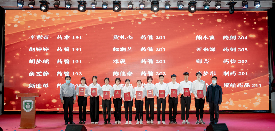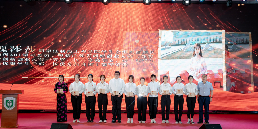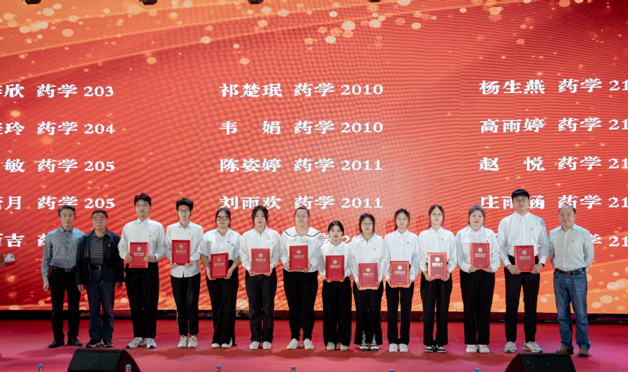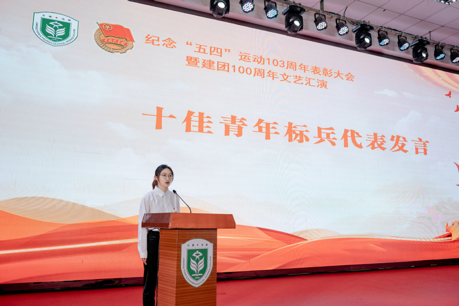 在雄壮的国歌声中,表彰大会正式开幕,副校长安进宣读了表彰决定;与会校领导为获奖的优秀团员、优秀团干和优秀志愿者代表颁奖。优秀团员代表食科201班张珺彧同学上台发言。