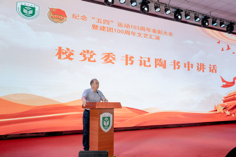 5月2日下午,纪念 “五四”运动103周年表彰大会暨庆祝建团100周年文艺汇演在大学生活动中心举行。校领导陶书中、翟玮玮、张建华、沈艾林、安进、贾韶千,党委委员周耀明、张军等出席会议并观看汇演。