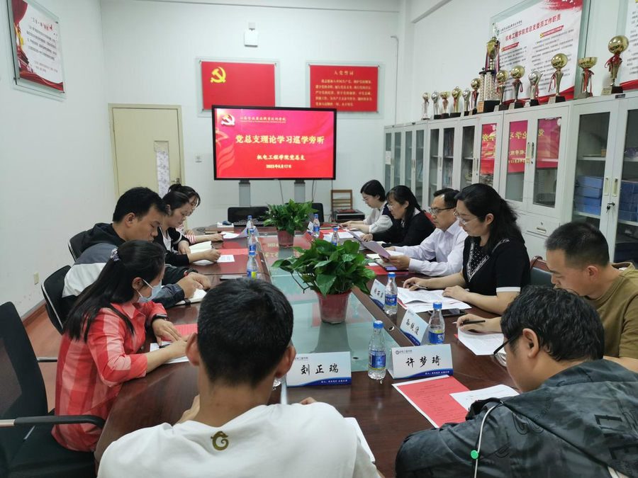 在机电工程学院党总支会议室,总支组织委员严贝贝首先领学了习近平总书记《在庆祝中国共产主义青年团成立100周年大会上的讲话》内容。随后,总支副书记张丽萍作了题为“有责任有担当,青春才会闪光”的重点发言,她指出要以习近平总书记重要讲话精神为指引,聚焦立德树人根本任务,学干结合、以干促学,及时为师生办实事,解难题。学习组其他成员及学生党员代表结合自身工作就总书记的讲话内容谈了个人感悟。张建华认真听取了学习组的交流研讨,他指出本次学习主题突出,能够对总书记的最新讲话精神做到及时学、跟进学。同时,他还提出了三点希望:一是希望机电工程学院党总支能在思想引领上,厚植爱国主义教育;二要进一步凝聚青年力量,夯实组织堡垒,加强对共青团的指导,坚持党建引领团建;三是要在服务青年成长、坚持实践育人方面下功夫,增强学生的劳动观、就业观、成才观。会议由机电工程学院党总支副书记张丽萍主持,学习组全体成员和学生党员代表参加了学习。