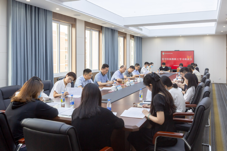 6月21日下午,学校举行留学人员学习座谈会。党委书记陶书中,党委副书记、校长冯锋,以及党委组织部、党委宣传部、党委教师工作部负责同志参加了会议。