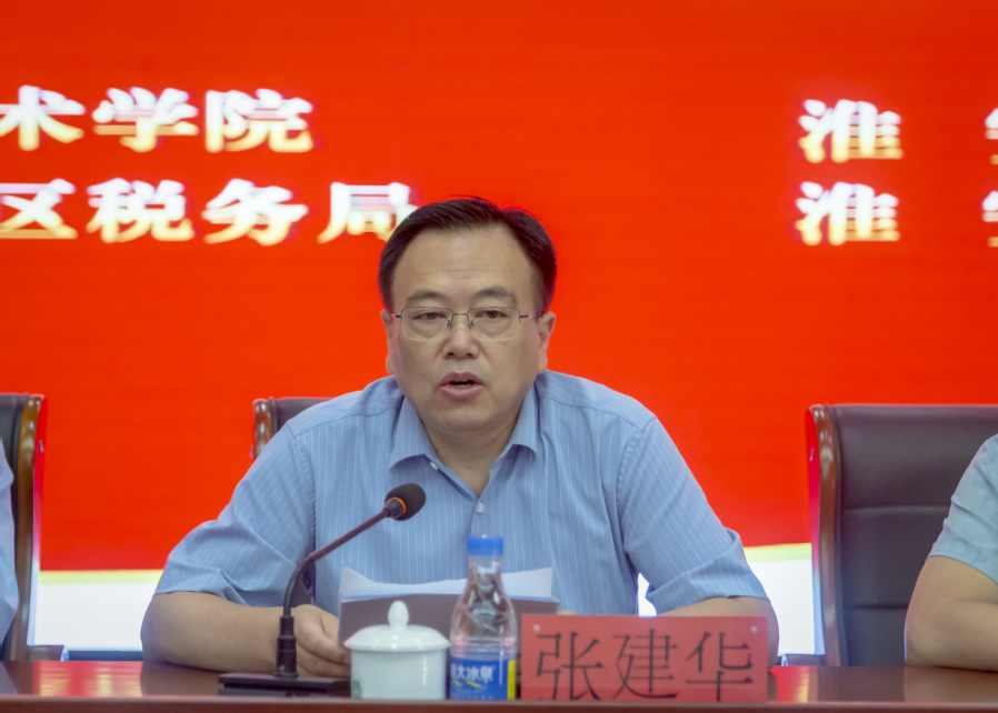 首先,张建华代表学校对本次活动的开展表示衷心地感谢。随后,张建华就好博·(中国)手机网页版的建校、发展情况进行了介绍。淮安经济开发区税务局副局长朱永、淮安市工商联经济联络处处长张志勇也分别介绍了组织本次活动的目的和意义。