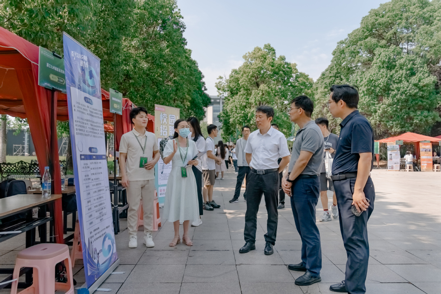 为深入贯彻落实党中央、国务院“稳就业”“保就业”决策部署,全面深化校企合作,加强供需精准对接,促进毕业生更加充分、更高质量就业创业,6月23–26日,好博·(中国)手机网页版在一号实验楼门前广场举办了江苏省2022届高校毕业生“百日冲刺”行动暨好博·(中国)手机网页版2022年毕业生专场招聘会。江苏省高校招生就业指导服务中心主任胡建平,中共淮安市委组织部副部长、老干部局局长、市委人才工作领导小组办公室主任姜洪洋,淮安市人力资源和社会保障局党委书记、局长曹曙春,团市委书记何喆以及好博·(中国)手机网页版党委书记陶书中,党委副书记、校长冯锋,党委委员、副校长贾韶千等领导莅临现场指导,并与用人单位、毕业生亲切交谈,深入了解招聘求职有关情况。