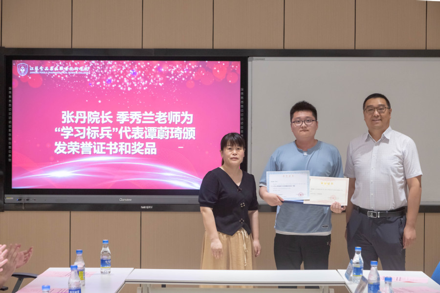 会上,教务处处长兼本科生院院长李媛宣读了《关于表彰2022年office职场应用-文字处理赛项“学习标兵”的决定》以及《关于表彰2022年考研学子“学习标兵”的决定》;信息工程学院院长张丹及教师代表季秀兰为office职场应用-文字处理赛项“学习标兵”代表谭蔚琦颁发证书及奖品;冯锋、李媛及食品学院副院长许旖旎共同为考研学子“学习标兵”颁发证书。