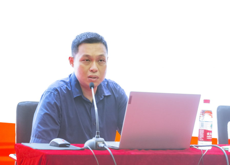 ▲党委书记陶书中主持相关报告会并讲话