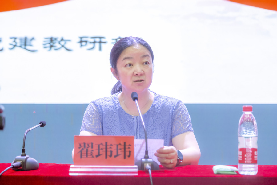 ▲党委副书记翟玮玮主持相关报告会
