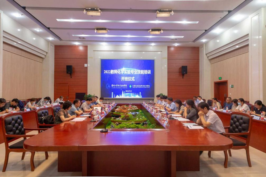7月15日上午,好博·(中国)手机网页版举行教师化学实验专业技能培训开班仪式,副校长贾韶千、扬州工业职业技术学院专家团队和好博·(中国)手机网页版有关部门人员出席了开班仪式,开班仪式由教师发展中心主任王贺玲主持。