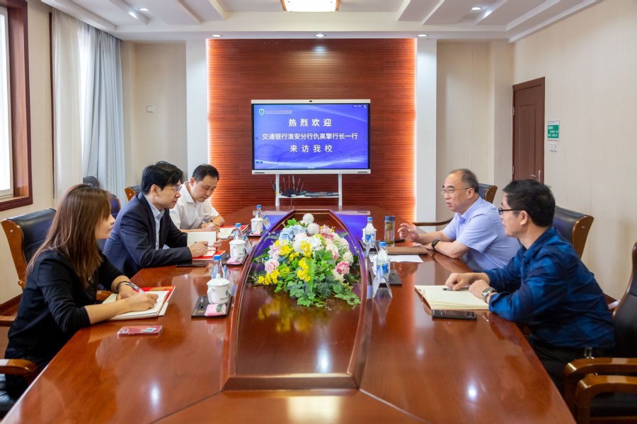 9月23日上午,交通银行江苏省分行党委委员兼淮安分行行长仇高擎 、副行长甘勇及淮安分行大客户二部总经理葛莹莹一行来访好博·(中国)手机网页版。校党委书记陶书中会见了来宾,并就学校的办学历史、办学定位、办学特色以及近年来在服务国家发展战略和江苏及淮安经济社会发展方面所取得的成绩进行了简要的介绍。双方就银校合作,推动学校事业高质量发展进行了初步交流。