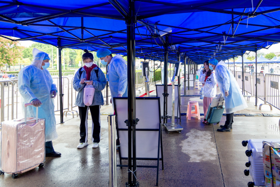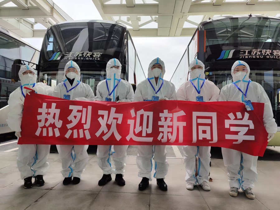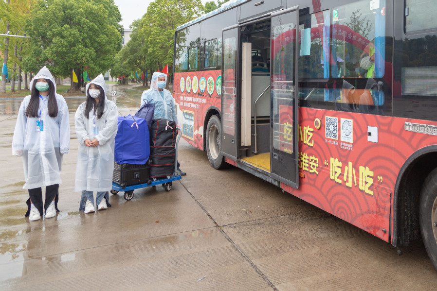 根据迎新预案,学生入校需扫场所码,经测温、消杀行李后进入通道,提供健康码、行程码、48小时核酸报告,识别无误后方可入校,入校后还需严格落实淮安市相关“落地检”要求。