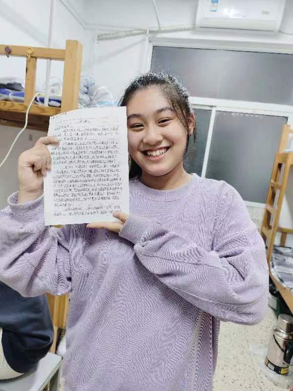 “老师对我们特别温柔,我们在这里吃得好,住得好,一切都好,请爸爸妈妈放心,感谢学校为我们提供的一切。”