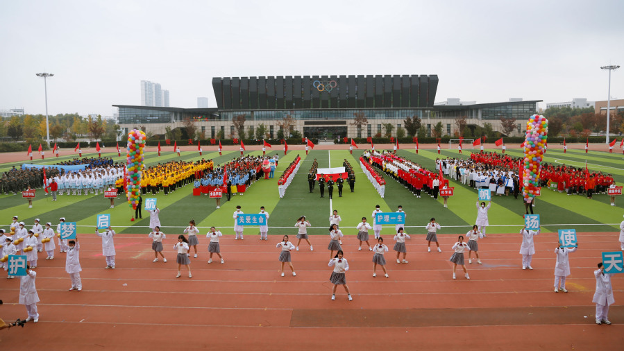 11月11日上午,好博·(中国)手机网页版第十九届田径运动会盛大开幕。校领导陶书中、薛宇、翟玮玮、张建华、沈艾林、安进、贾韶千出席开幕式。