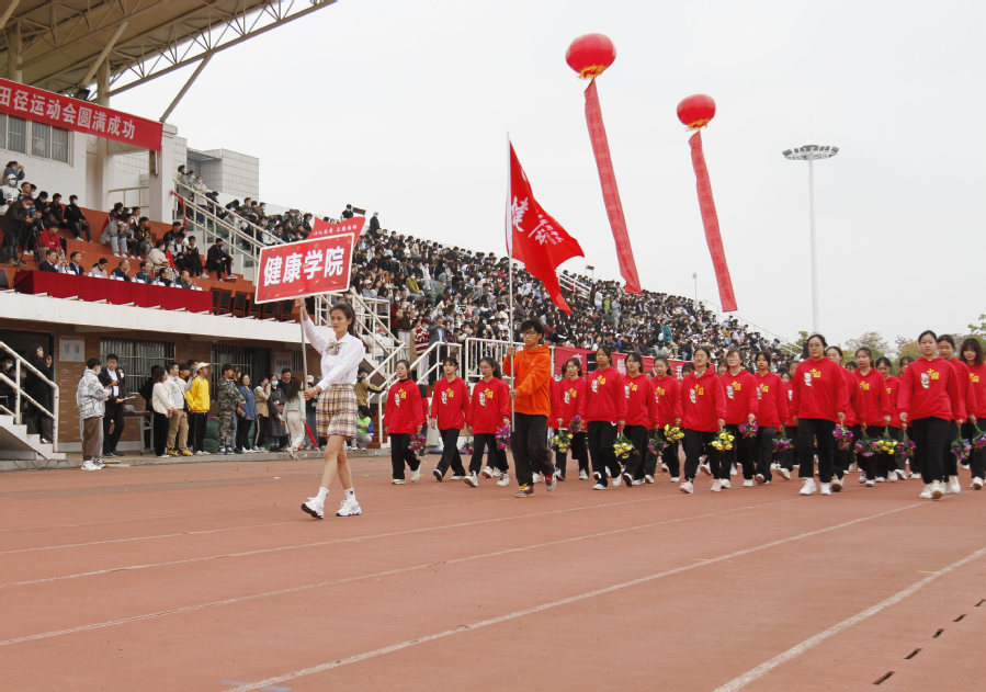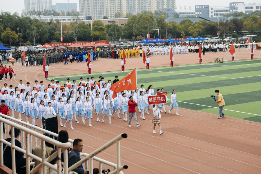 ▲由财贸学院和护理学院共同组成的教师方阵,昂首阔步,精神抖擞,他们不仅为英姿飒爽的学生呐喊,更会以拼搏的汗水挥洒赛场。(图/马靖宇)