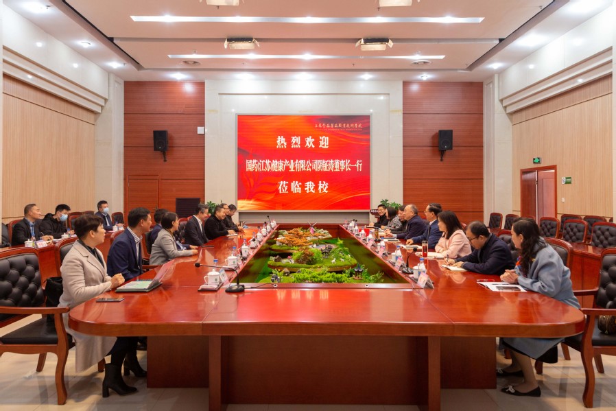 11月15日上午,国药(江苏)健康产业有限公司董事长阴钲涛一行来访好博·(中国)手机网页版。校党委书记陶书中、校长薛宇、副校长贾韶千热情接待了来宾。