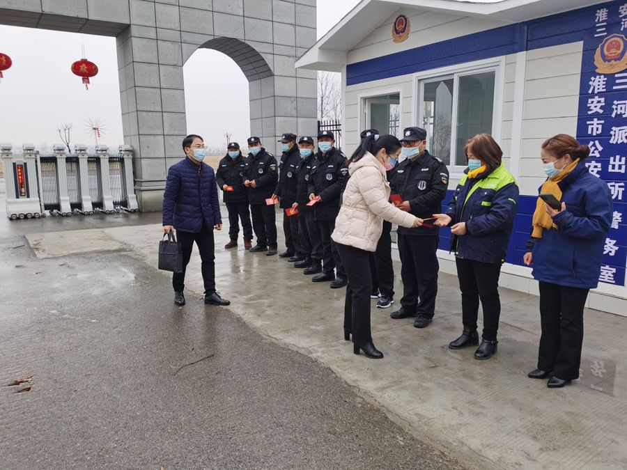 翟玮玮一行先后来到洪泽湖产业学院及枚乘路本部保卫处、教学楼、监控中心、各宿舍楼等场所看望正在值班的同志,询问值守情况,并代表学校向大家致以新年问候,送上新春祝福,向大家发放了代表学校心意的红包。翟玮玮对大家在春节期间仍坚守岗位、保障校园秩序和安全稳定表示衷心的感谢。受慰问的教职工感谢学校的关怀和祝福,并表示在新的一年里将以崭新的面貌投入到工作中,为建设平安文明校园贡献力量。