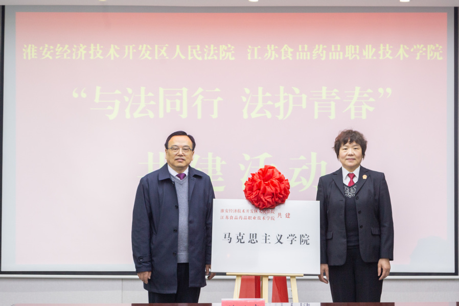 王惠芹、张建华共同为“共建马克思主义学院”“法治教育实践基地”揭牌。