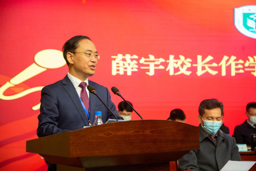 ▲校长薛宇作《学校工作报告》