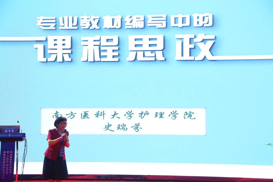 在专家报告环节,南方医科大学史瑞芬教授作题为“教材编写中的课程思政”的专题报告,她从课程思政建设、思政元素融入、思政内生机质等三个方面展开,重点从课程思政的实践误区、如何挖掘课程思政元素、课程思政融入教材等方面进行了详细说明和经验分享,为广大教师在课程思政建设中提出了针对性和可操作性的建议。