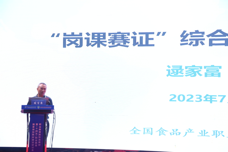 全国食品产业职业教育教指委常务副主任委员逯家富作题为“岗课赛证综合育人与新形态教材建设”的专题讲座,他指出了岗课赛证综合育人是推进新时代职业教育高质量发展的重要举措,也是创新人才培养模式、深化产教融合的重要载体,并围绕“岗课赛证”做好新时代教材的建设工作,并作了经验分享。