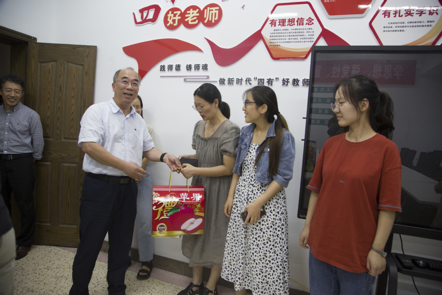 今年暑期,天气炎热,更加热火朝天的是各部门教职员工奋战在一线的拼搏场面。“教育部11项重点工程”、“双高”建设、数智校园建设、科研、基建、互联网+大赛……为了学校更好更快地发展,他们挥汗如雨,奋勇争先。8月15日下午,全体校领导带上水果亲切慰问了暑期坚守工作岗位的教职员工,诚挚感谢他们的辛勤付出。