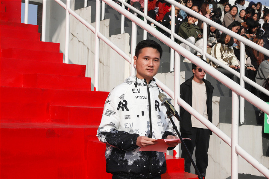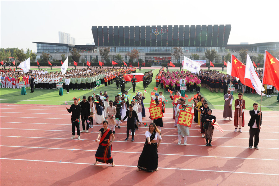 国际教育学院代表队由俄罗斯、塔吉克斯坦、摩洛哥、孟加拉、印度尼西亚、巴基斯坦、卢旺达等国家的留学生组成,他们手持各自国家的国旗,身穿各自国家的服装,通过响亮的口号表达着对学校的热爱,用他们的声音,向更多国家传递“中国声音”。孟加拉的女生带来了他们国家的特色舞蹈。