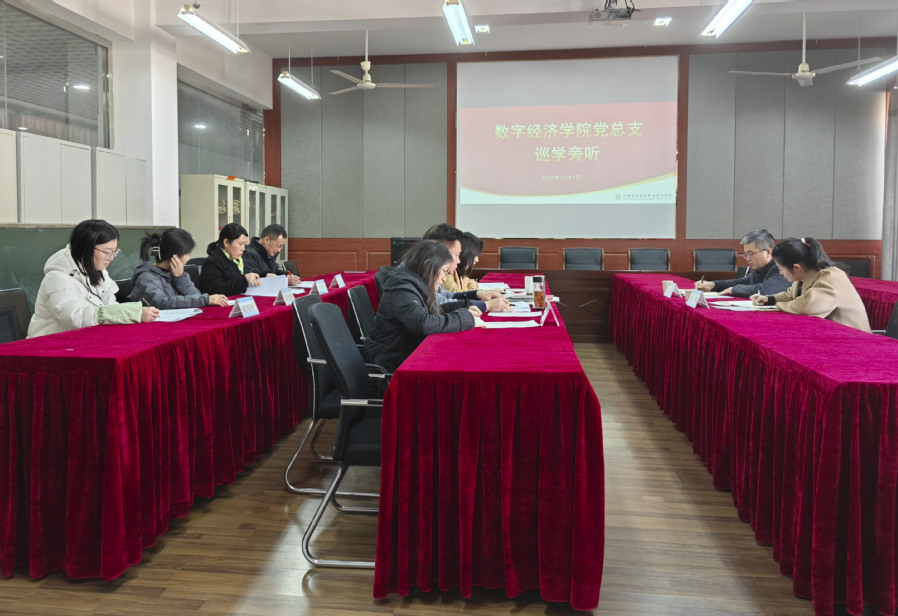 12月1日,党委委员、副校长张军巡学旁听数字经济学院党总支理论学习组学习会,党总支理论学习组全体成员参加学习。