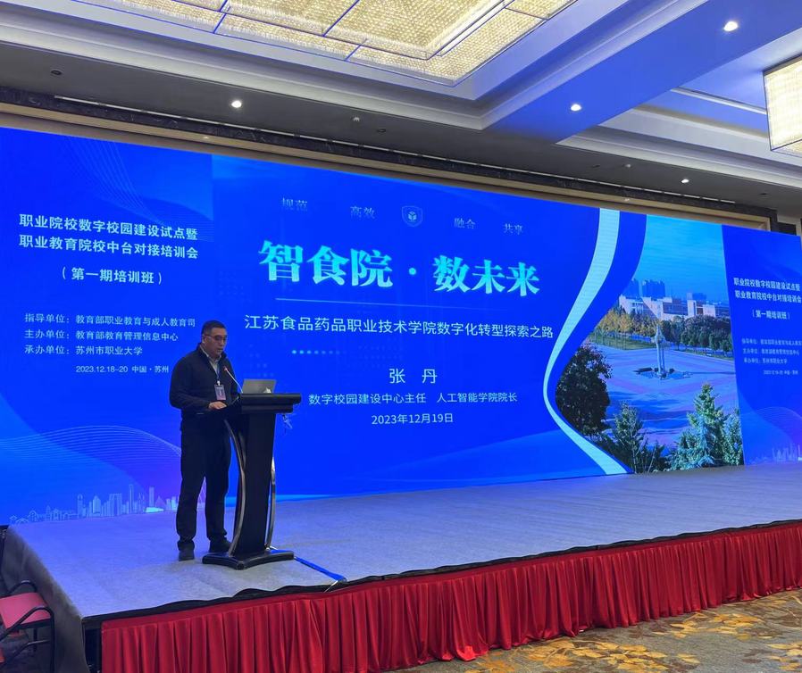 12月19日至20日,由教育部职业教育与成人教育司、教育部教育管理信息中心主办的“全国职业教育智慧大脑院校中台对接培训会”在江苏苏州召开,好博·(中国)手机网页版党委委员、副院长焦宇知,人工智能学院院长张丹出席培训会并作典型经验分享。