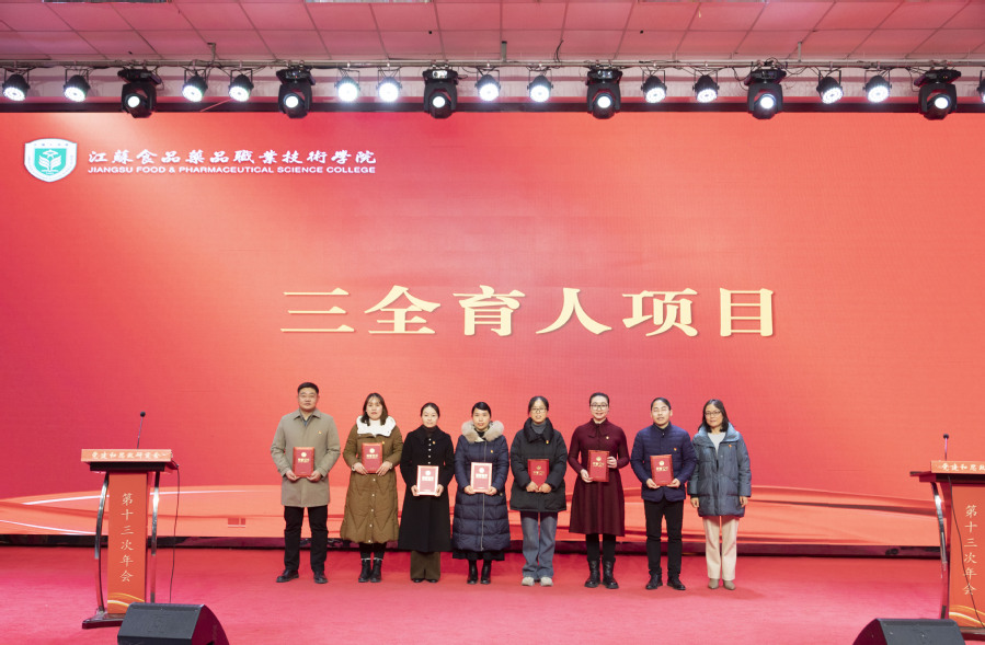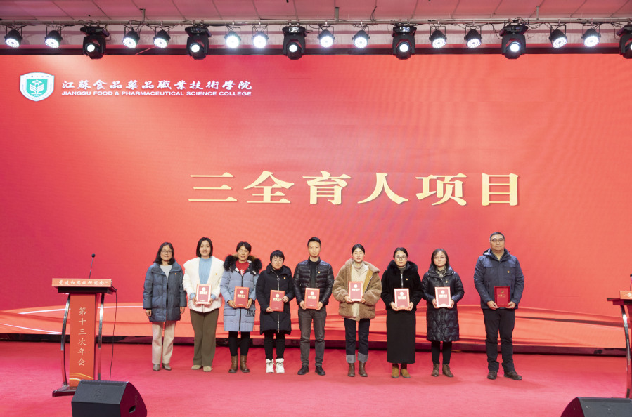 薛宇向网络名师工作室授牌,制药工程学院党总支书记王涛济接受授牌。今年十月,王涛济入选江苏省级高校网络教育名师。