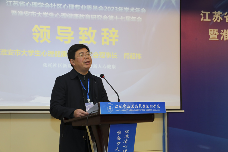 淮安市大学生心理健康教育研究会理事长、淮阴师范学院党委常委、副校长闫超栋对江苏省心理学会、社区心理专业委员会给予的支持表示衷心的感谢,对本次大会的召开表示祝贺,对大会筹备组的工作给予充分肯定。闫超栋理事长在致辞中着重强调了大学生心理健康教育工作的重要性,期待各校加强交流合作,淮安市大学生心理健康研究会也将经济推动各会员单位勠力同心、资源共享,再创辉煌。