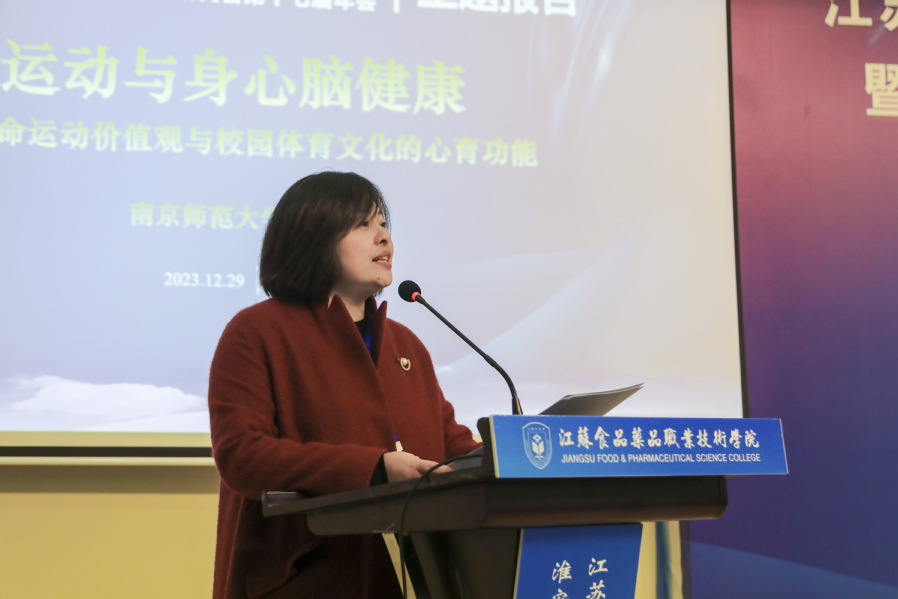 开幕式后,江苏省心理学会理事长、南京师范大学邓铸教授以《运动与身心脑健康——生命运动价值观与校园体育文化的心育功能》为主题,结合毛泽东同志诞辰130周年历史契机,从科学的角度,深入剖析运动对身心脑健康的积极影响,以及生命运动价值观与校园体育文化的内在联系,为我们引出了一条心理与运动相结合的通路。