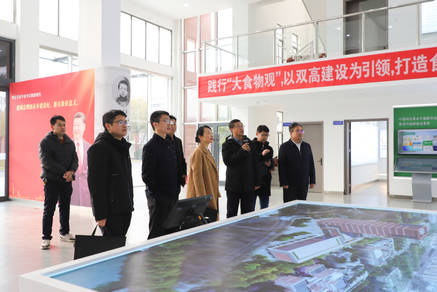 汇报会结束后,考核专家组一行仔细查阅了创建工作材料,并对学校双高展览、食品烘焙车间、实验实训管理中心、学生餐厅、学生公寓、监控中心等重点区域进行了实地检查。